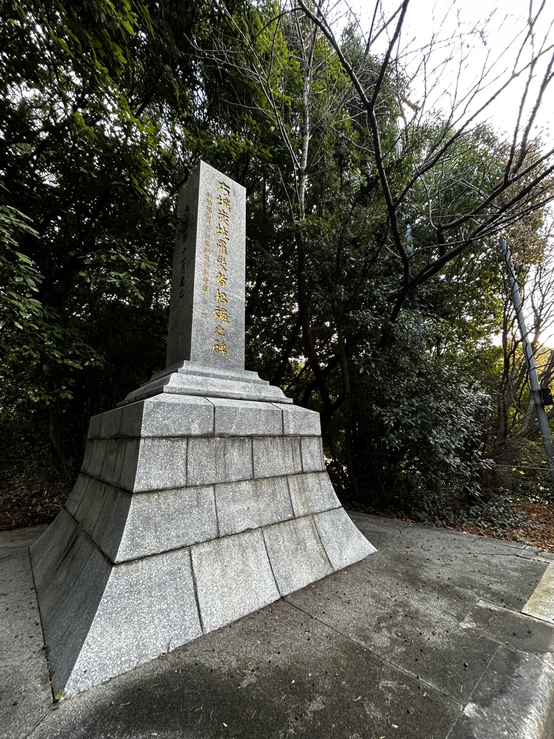 福智町伊方にたたずむ慰霊碑=福智で竹明かり慰霊祭(写真提供=方城大非常竹灯り慰霊祭実行委員会)
