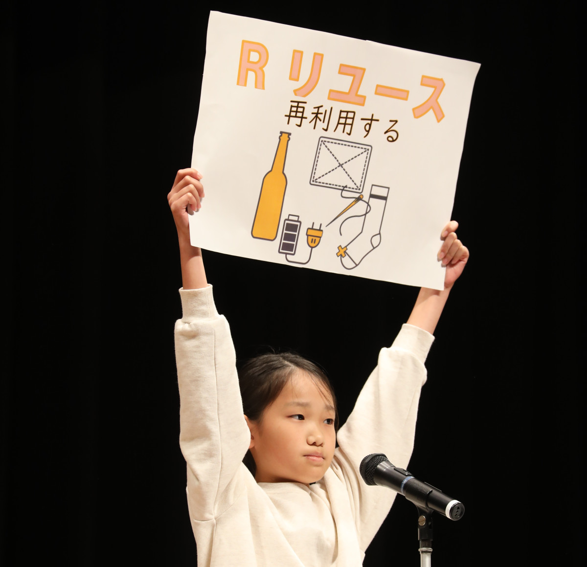 ごみ拾いを通じた地球環境への思いを発表した平島紗羅さん=福智で「少年の主張大会」(写真提供=福智町)