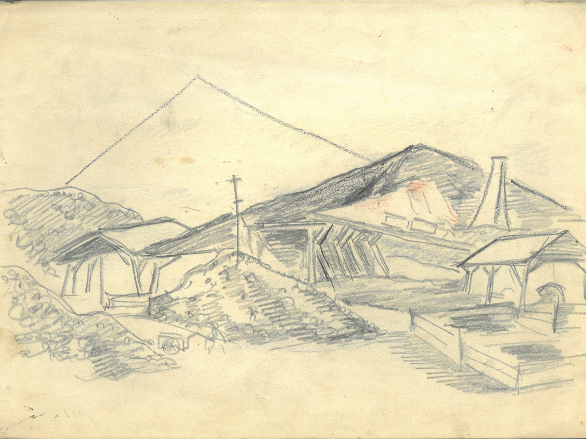 富山妙子「炭鉱でのドローイング:1950年代」個人蔵©TOMIYAMA Taeko=田川市美術館で企画展(写真提供=田川市美術館)