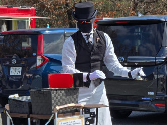 パフォーマーE.M.Fさんのパフォーマンスの様子=飯塚でカーブーツ(写真提供=筑豊イベントサプライ)