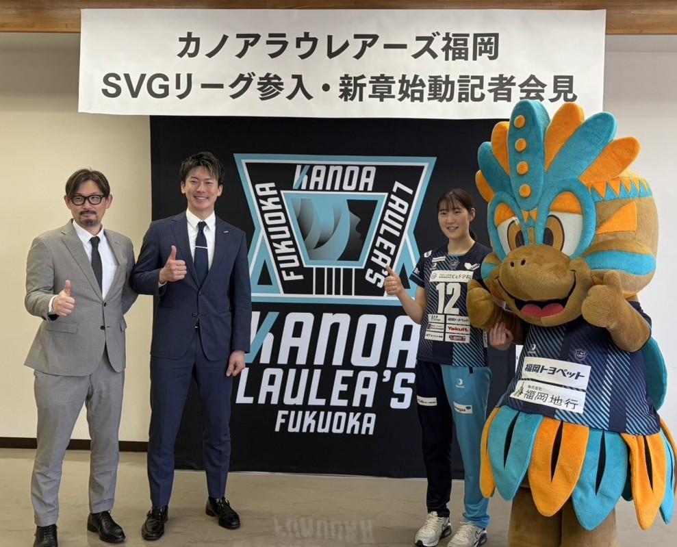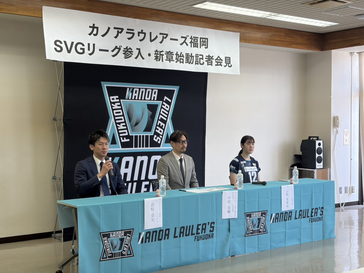 福智町を本拠地とする女子バレーボールチーム「カノアラウレアーズ福岡」が4月16日、福智町役場で記者会見を開き、次シーズンからの「SV.LEAGUE GROWTH(SVG)」参入を発表した。