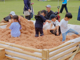 木を使った体験コーナーの様子=嘉麻で「木育まつり」(写真提供=嘉麻木育舎)