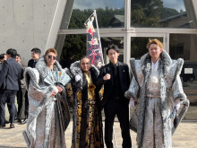 会場には、筑豊高校と直方高校の書道部による、門出を祝うメッセージが書かれた横断幕も掲げられた。