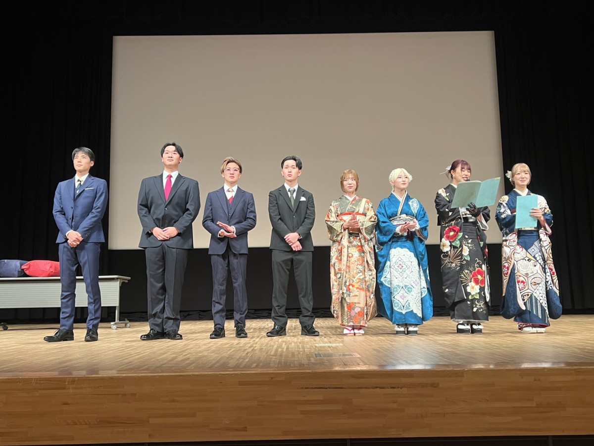 参加者を代表して、副実行委員長の柳川輝稀さんが「家族や友人、先生方など多くの方に支えられて今の自分がある。これまでの経験を自分の生き様で見せ、恩返しができるよう成長を続けたい。周りと比較することなく、自分らしく生きていきたい」と決意を述べた。
