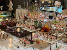 支配人の福永千尋さんは「女子の欲張りをかなえるため、全種類食べられるよう一口サイズにしている。会場は実際の婚礼でも使っている2階の『クリスタルホール』で、宝石箱の中に人が入っているようなイメージで作られた豪華なホール。スイーツビュッフェをきっかけに、多くの方にグランドベルズ飯塚を知っていただきたい。ロビーではカフェ利用も可能なので、気軽に立ち寄れる場所として身近に感じてもらえれば」と話す。