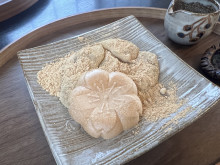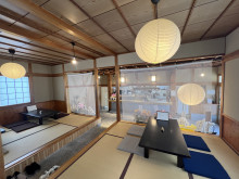 内装は元々の和の空間をほぼそのまま生かす。座敷と土間を仕切っていた腰壁を取り除き、「透け感」のある布で仕切ることで、広がりと「おこもり感」を両立させた。玄関から続く洗い出し土間で、「外と中のつながりを曖昧(あいまい)にするよう意識した」という。「パキッと区切るのではなく、優しく区切るのがこだわったポイント」と星野さん。店舗面積は約80平方メートル。席数は、座敷4卓16席のほか、カウンター席3席、テーブル席2席を設ける。