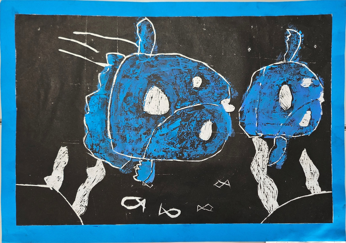 まんぼうの親子=田川市美術館で「子どもたちによる絵画展」(大浦小学校5年太田悠斗)