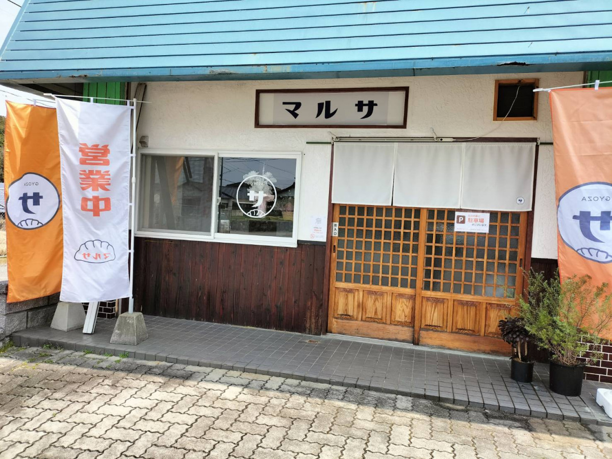 「マルサ」の看板と営業中の店舗=桂川に餃子店「餃子のマルサ」(写真提供=餃子のマルサ)
