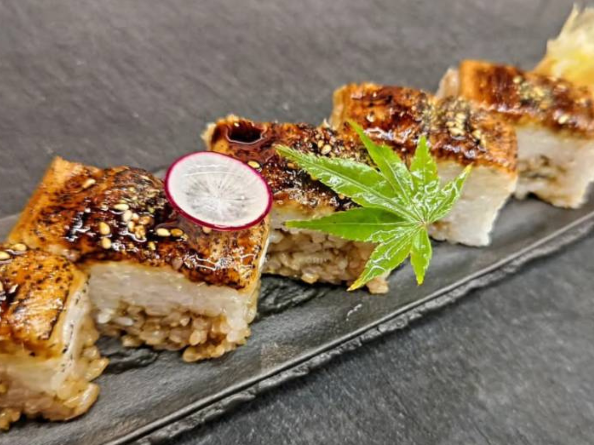 「焼き穴子の押しすし」(1,100円)=桂川町のすし店「鮨処 のり助」が3周年(写真提供=「鮨処 のり助」)