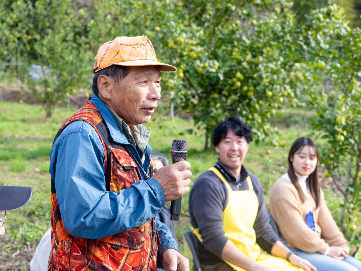 あがのレモン畑のオーナーの平野八十八さん=第3回あがのレモン収穫祭