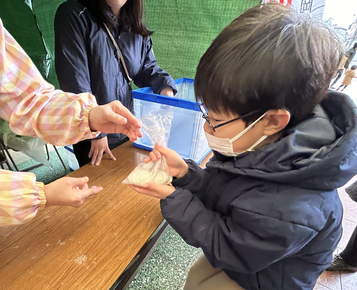餅を丸める様子=直方・殿町商店街で「福祉もちつき会」(写真提供=直方市社会福祉協議会)