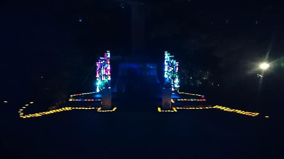 竹のライトアップ=福智で竹明かり慰霊祭(写真提供=方城大非常竹灯り慰霊祭実行委員会)