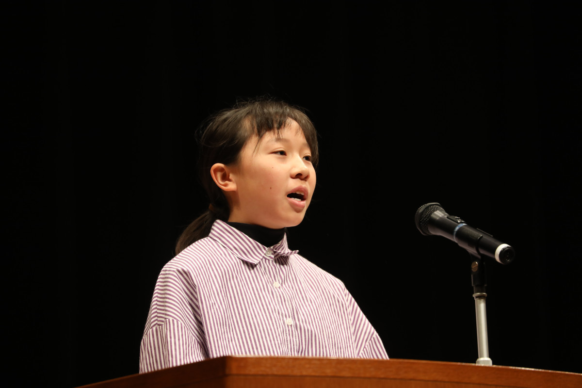 最優秀賞になった河原昴さんの発表=福智で「少年の主張大会」(写真提供=福智町)