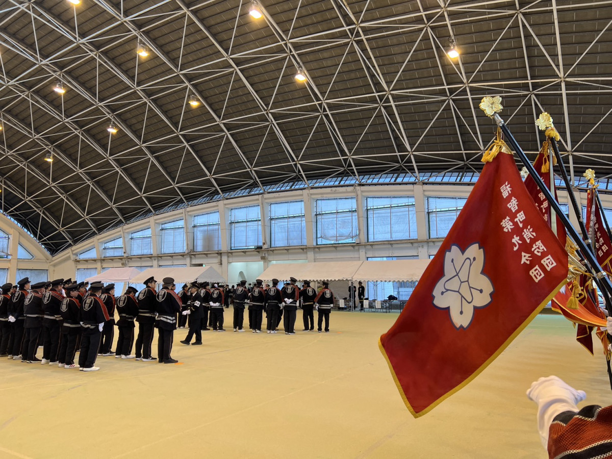 福智町の消防団員が一堂に会する「福智町消防出初式」が1月11日、金田ドーム(福智町金田)で開かれた。