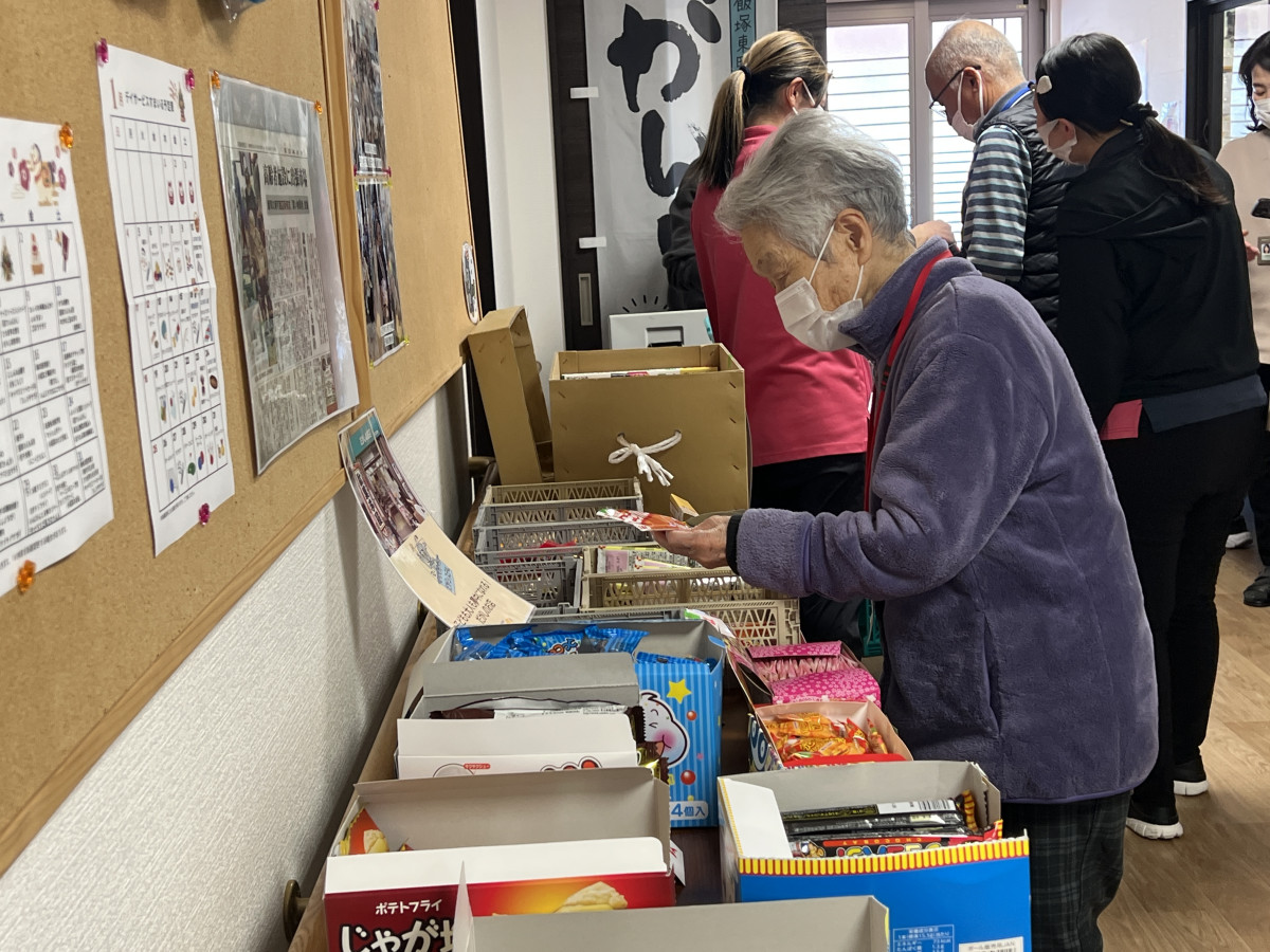 飯塚の東町商店街の有志13店舗で嘉麻市のデイサービス施設で出張販売する「出張がんばる市」が1月16日に開催された。