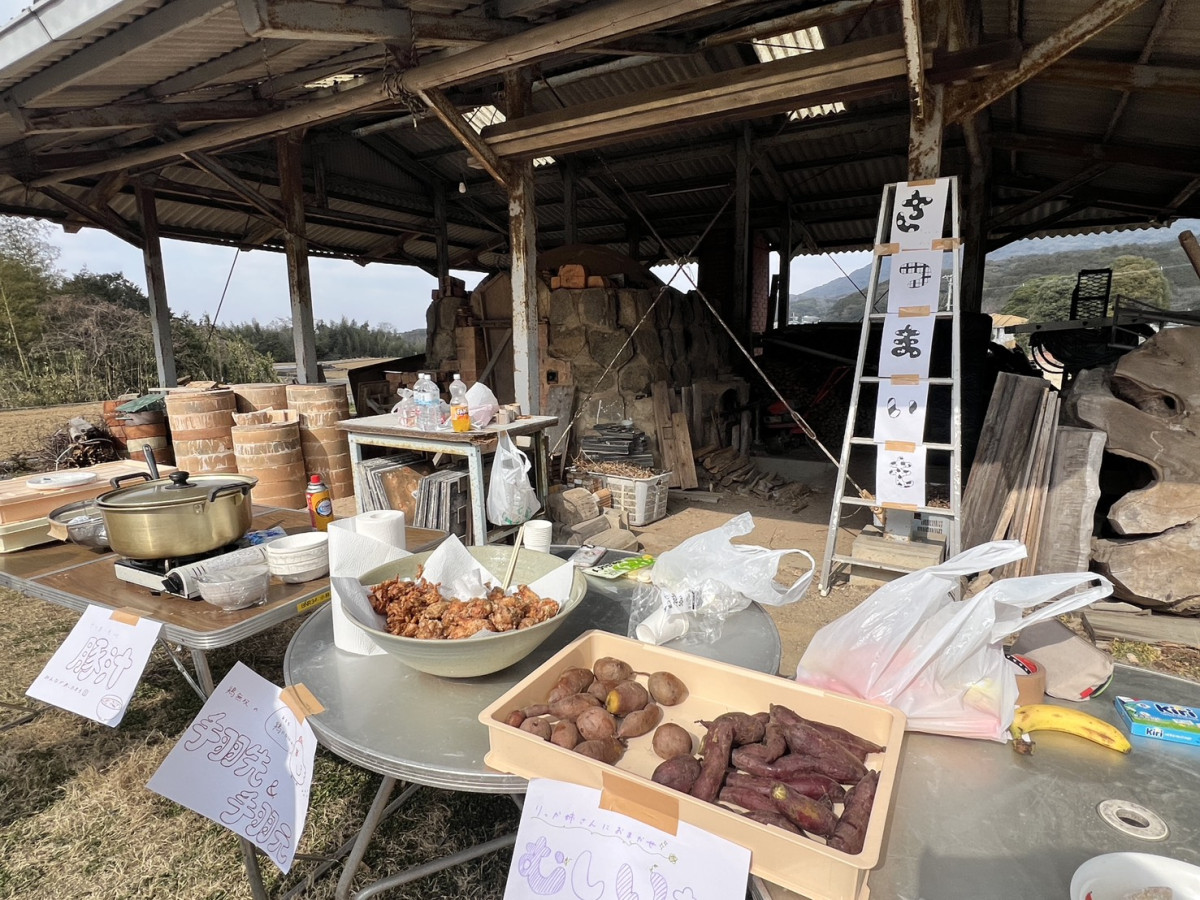 福智町上野の「堀田窯(ほったがま)」(福智町上野)で2月1日、学生団体と地元の窯元が共同で企画した「第1回さつまいも交流会」が開催された。