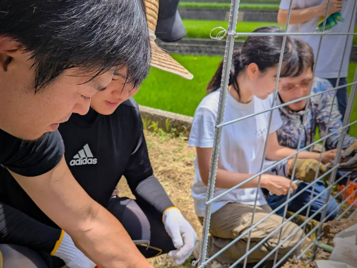 イノシシ対策の柵の設置は地域住民の協力で行われた=福智・上野焼の窯元で「さつまいも交流会」 (写真提供=堀田窯)