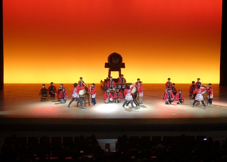 高田っ子太鼓の演奏=飯塚で子ども和太鼓「どんどこKids」(写真提供=飯塚市教育委員会)