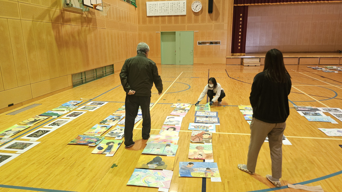 2次審査の様子=田川市美術館で「子どもたちによる絵画展」(写真提供=田川市美術館)