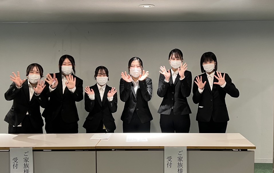 卒業証書授与式を支えた「麻生看護大学校」の在校生=飯塚・麻生看護校で卒業式