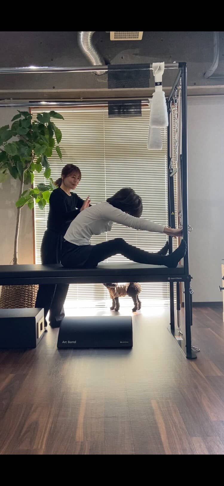 キャデラックトラピーズテーブルを使うパーソナルレッスンの様子=田川にピラティススタジオ「studio & pilates」(写真提供=studio & pilates)