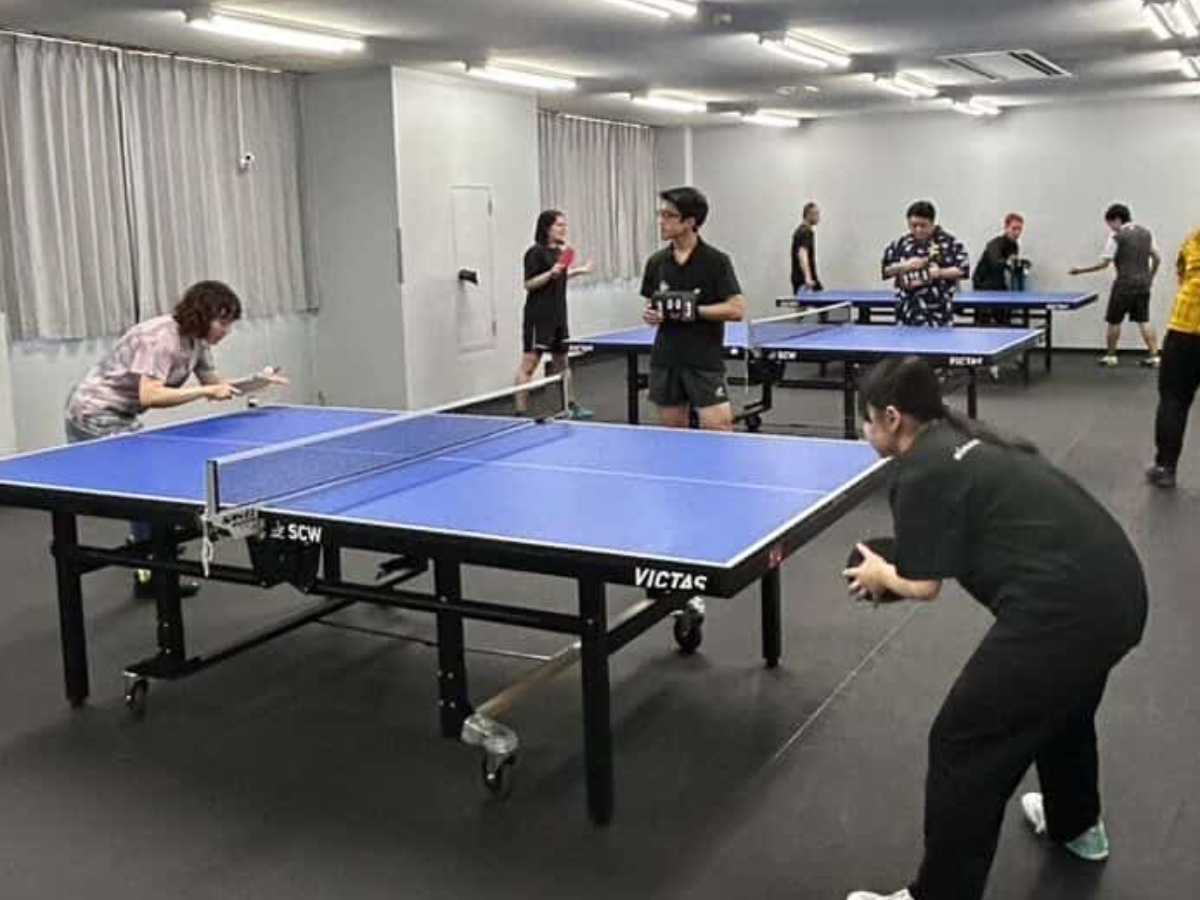 E-REVO卓球BASEで卓球をする様子=飯塚で卓球交流大会 (写真提供=E-REVO卓球BASE)