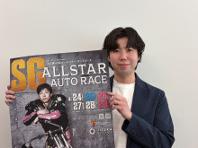オートレースの開催を告知する職員=飯塚オートに「ミニ水族館」(写真提供=オッズパーク )